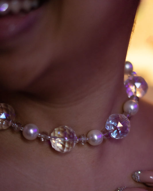 Collier en perles de cristal XL et perles de verre effet nacre - Collier Disco Bitch