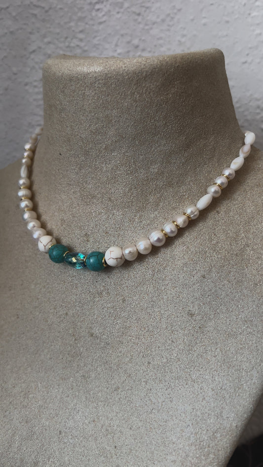 Collier en perles naturelles blanc et bleu - Collier Cleau