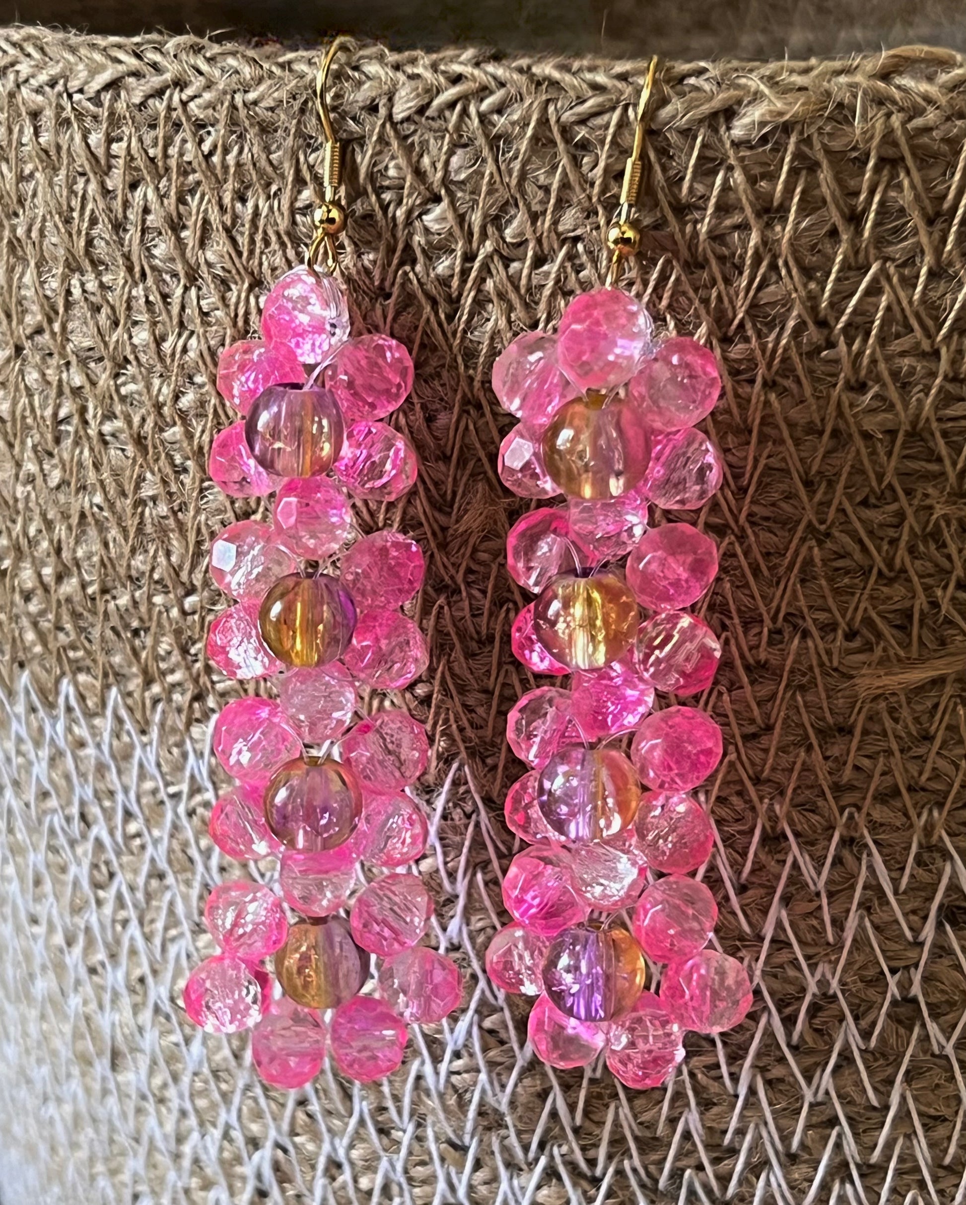 Boucles d'Oreilles fleur en perles de verre roses - Boucles d'Oreilles Rosy