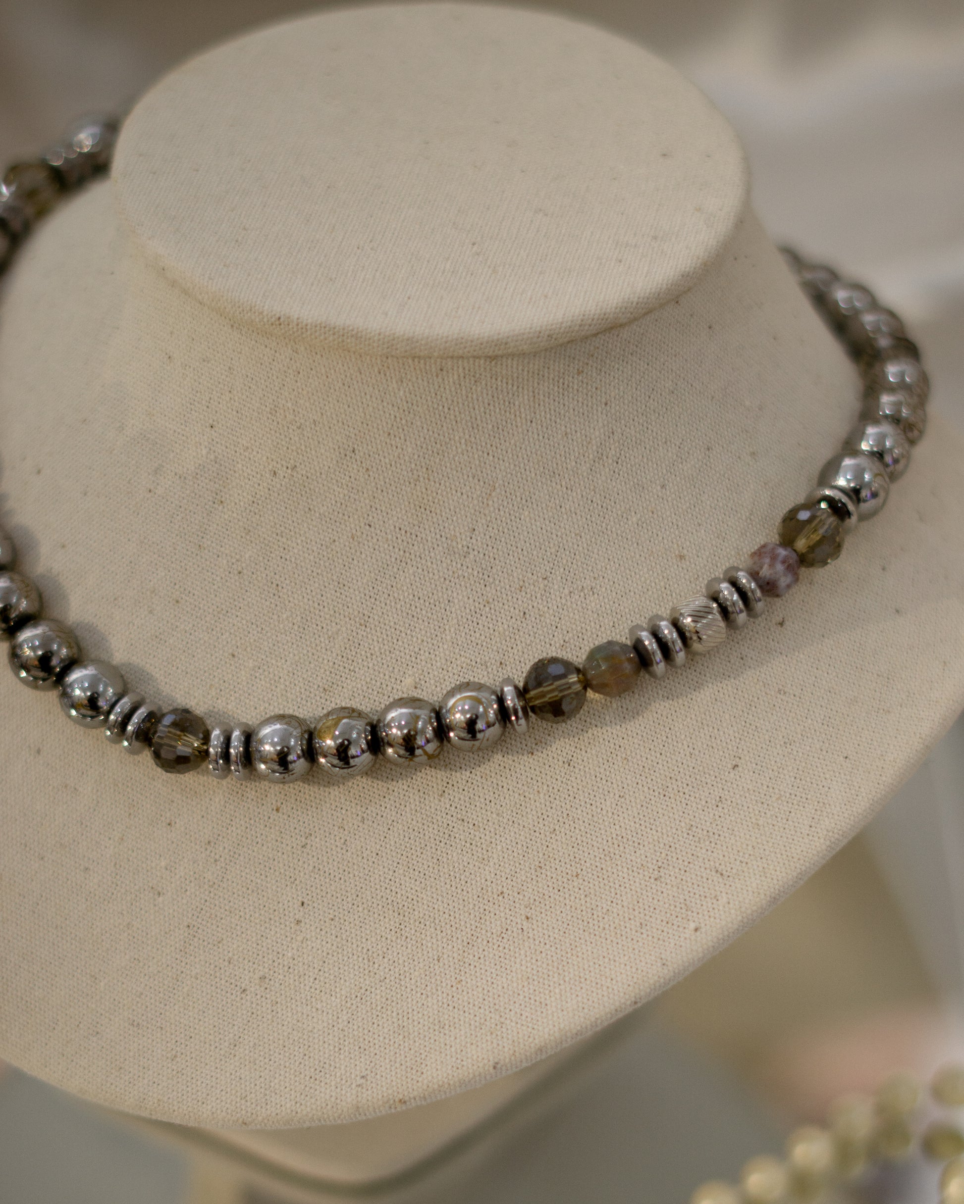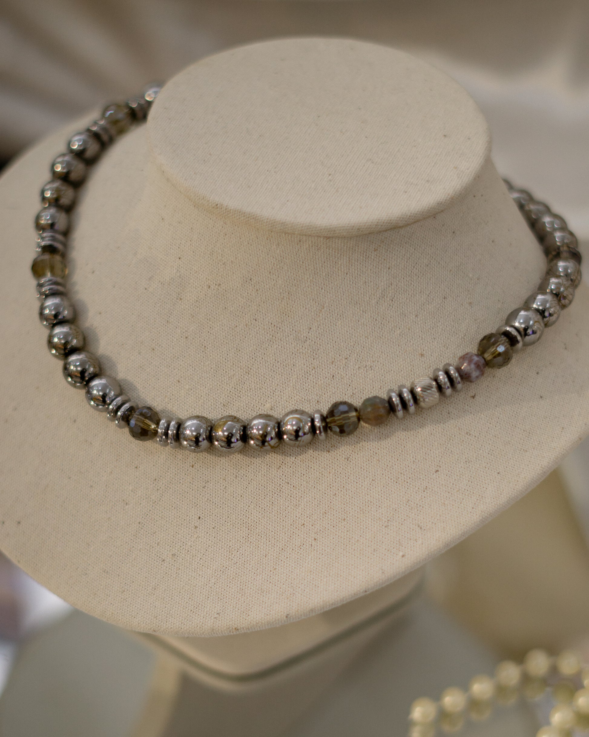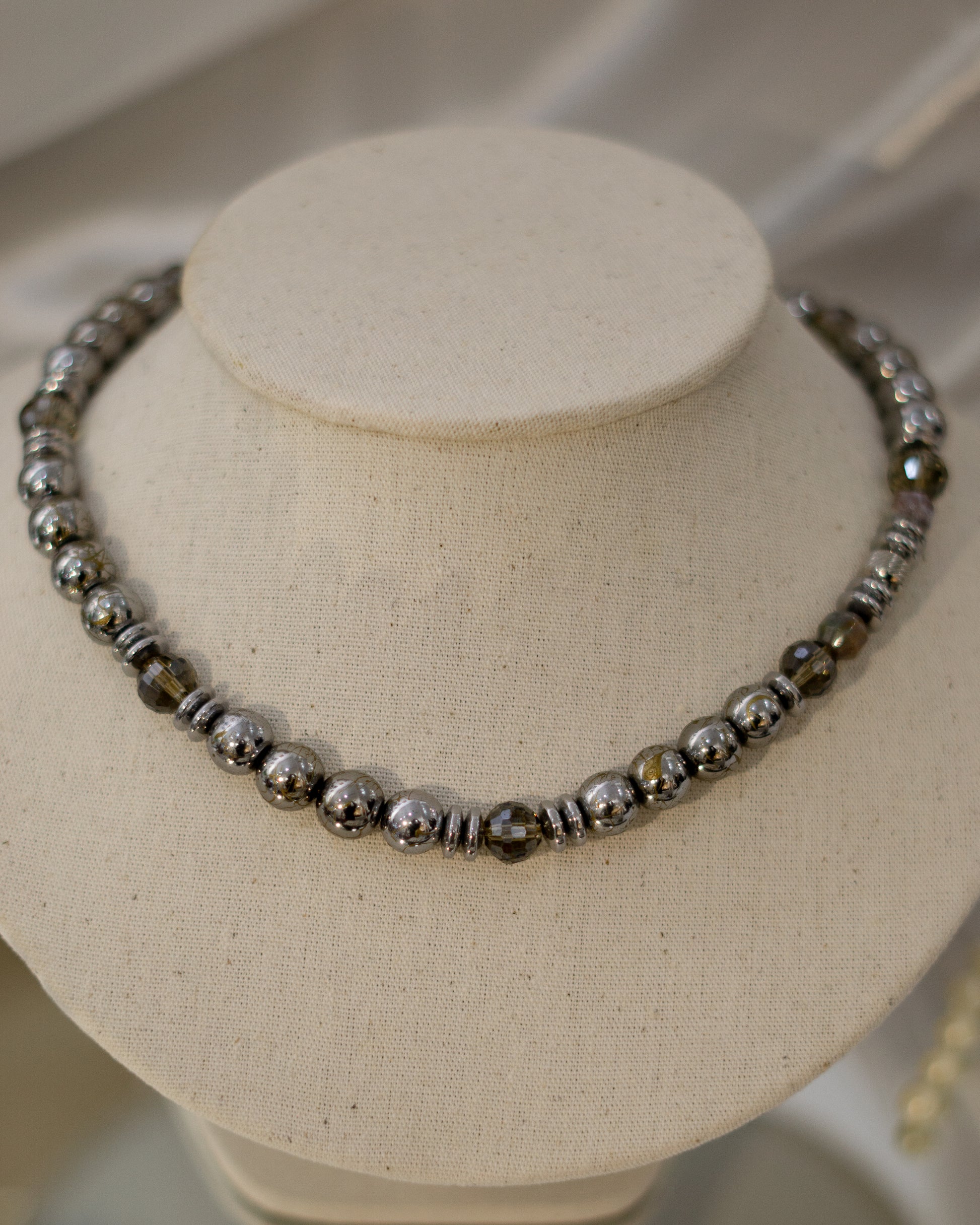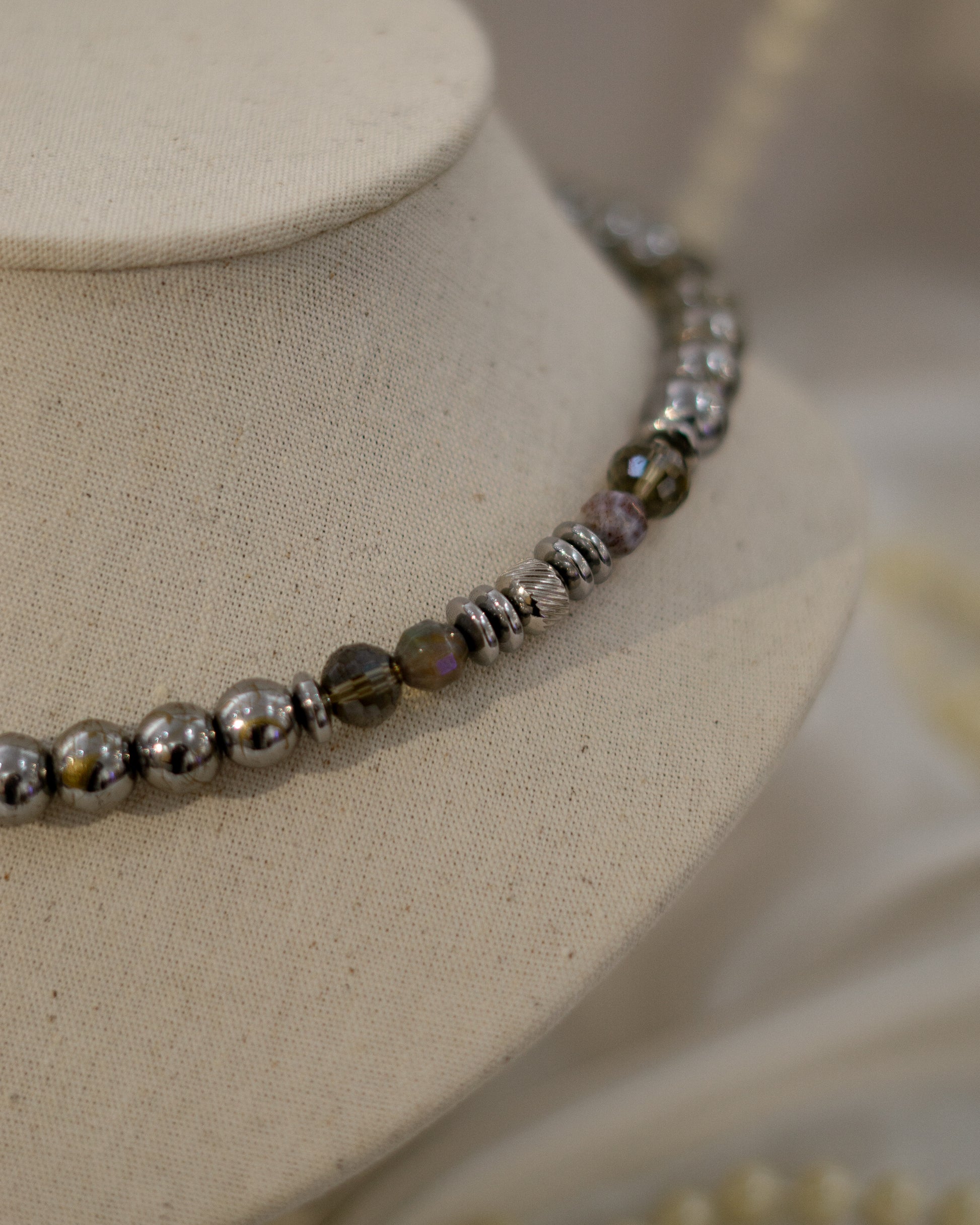 Alliant sobriété et caractère, le collier Titanium est une pièce unisexe conçue pour sublimer tous les styles. Composé de pierres d’hématite entièrement argentées, il est ponctué de touches d’agate et de cristal qui ajoutent une subtile variation de textures et de reflets. Avec son design épuré et intemporel, ce bijou incarne l’équilibre parfait entre force et élégance.