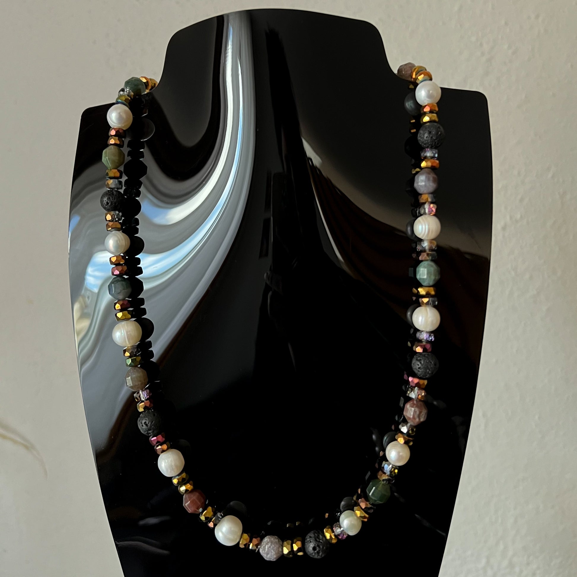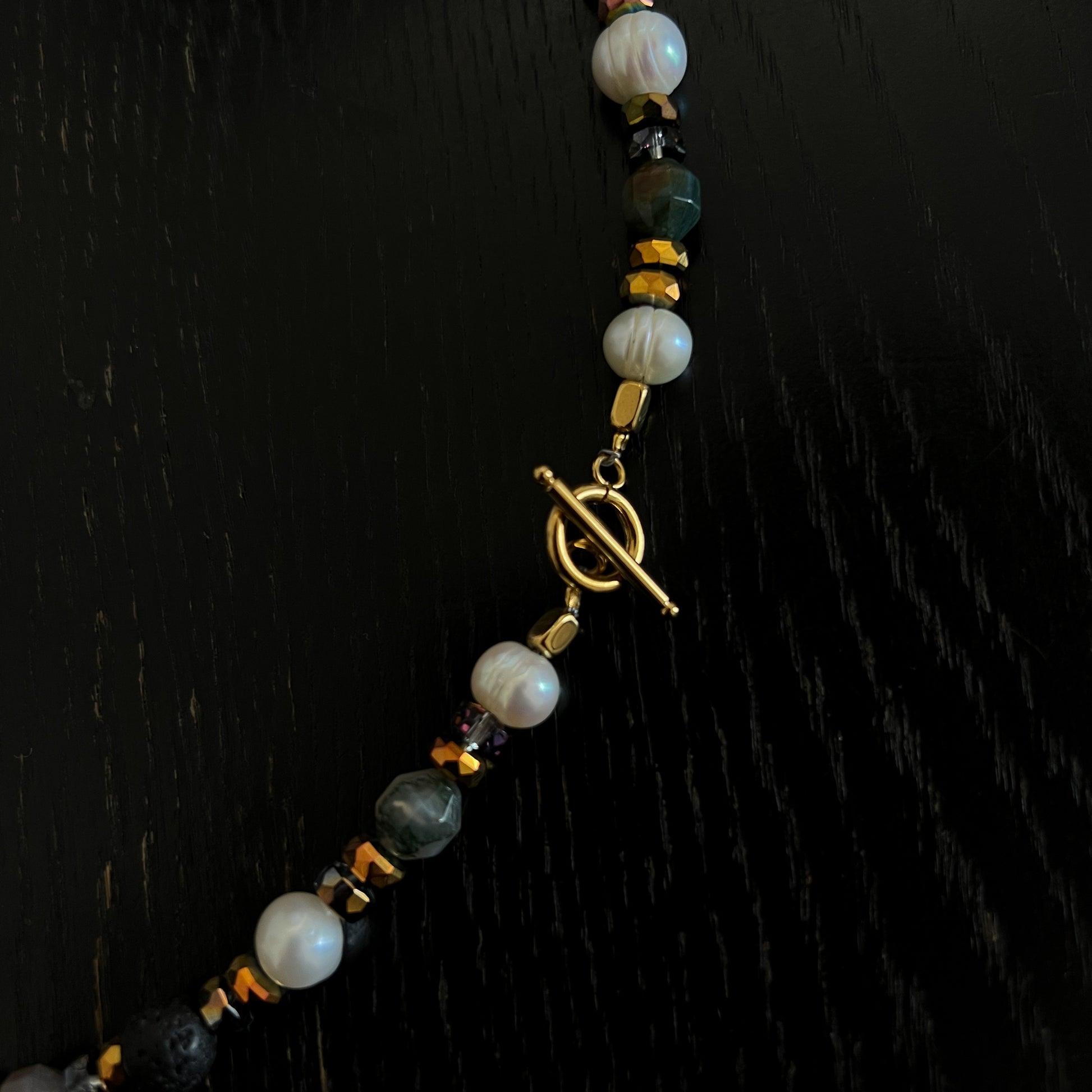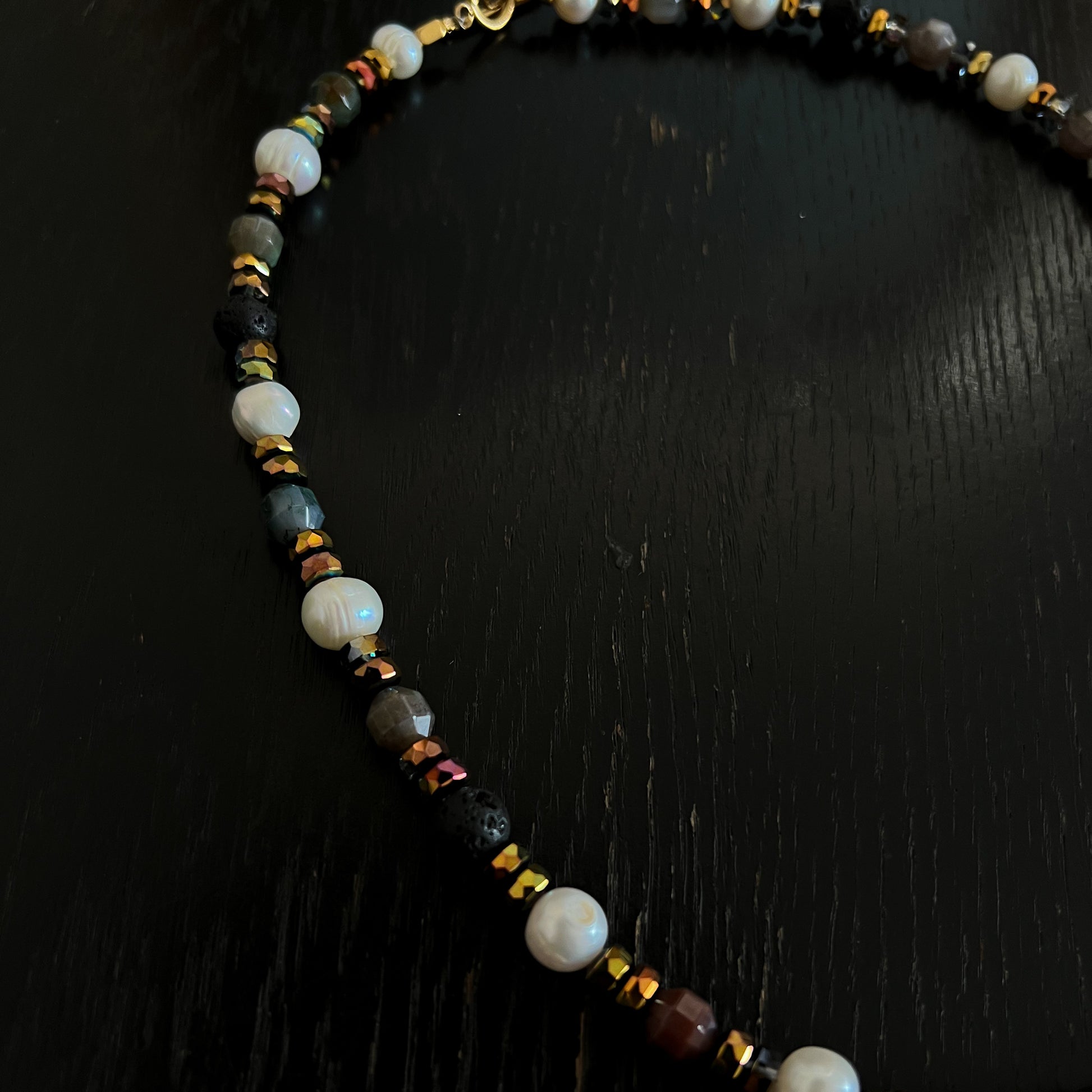 Plongez dans l'harmonie des éléments avec le collier "The Avatar". Ce bijou incarne l'équilibre émotionnel, physique et intellectuel à travers les vertus des perles en pierres d'Agate, perles d'eau douce, cristal et roches volcanique. Ils fusionnent pour créer une symphonie de couleurs et de reflets, reflétant la maîtrise des quatre éléments. Portez "The Avatar" pour embrasser votre propre équilibre et votre pouvoir intérieur. Idéal pour matcher avec la majorité de votre garde robe.