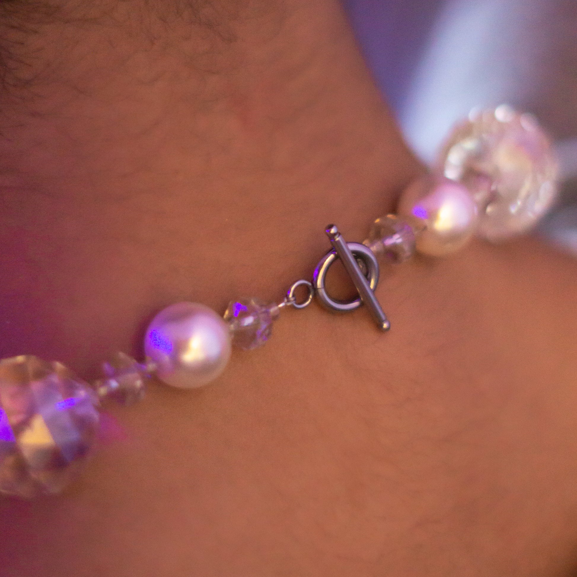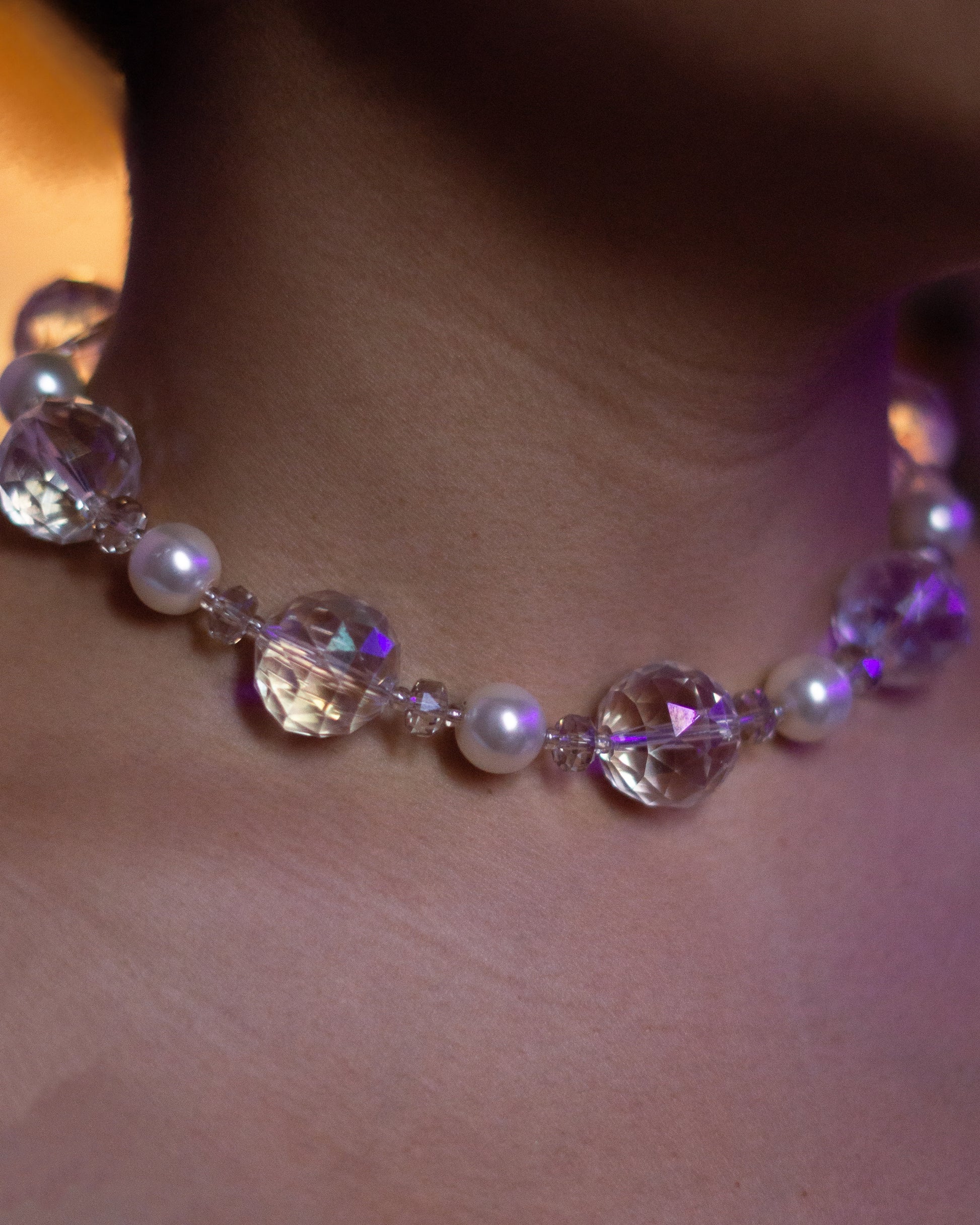 Collier en perles de cristal XL et perles de verre effet nacre - Collier Disco Bitch