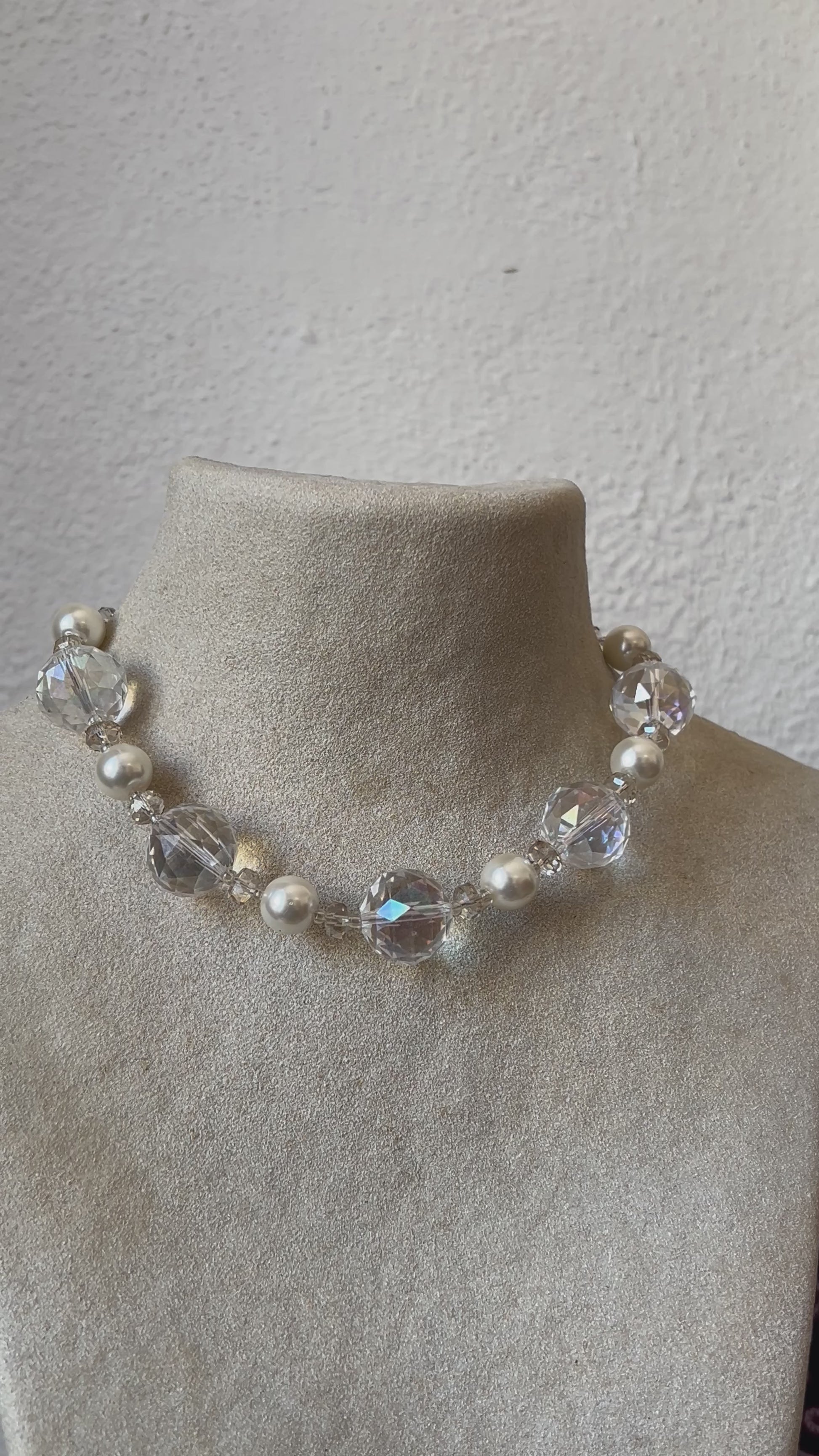 Ce bijou XL est orné de grosses boules de cristal étincelantes, rehaussées de perles nacrées pour une touche de sophistication. Idéal pour ajouter une dose d'extravagance à votre tenue, ce collier incarne l'esprit festif et exubérant. Avec ses grosse perles à facette évoquent la boule disco, il invite à la danse et à briller de mille feux lors de soirées spéciales ou d'occasions festives.